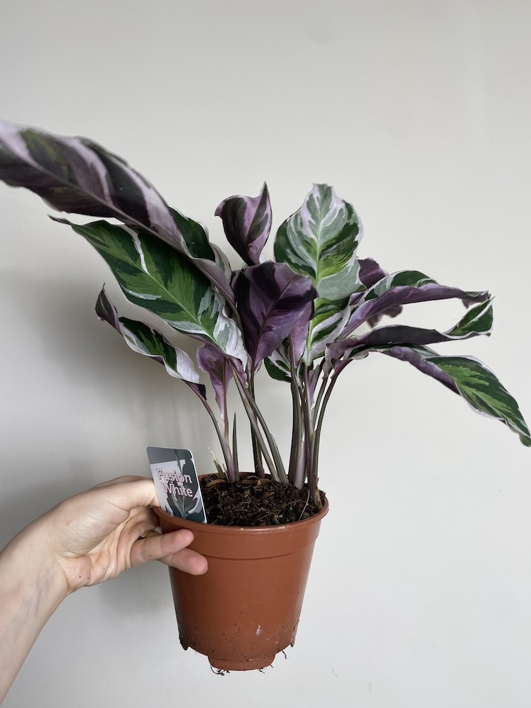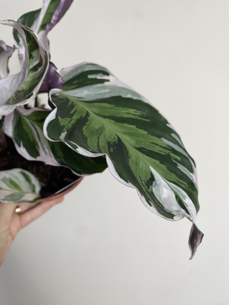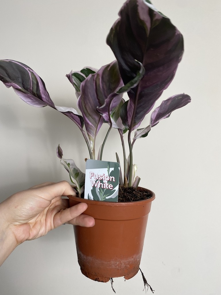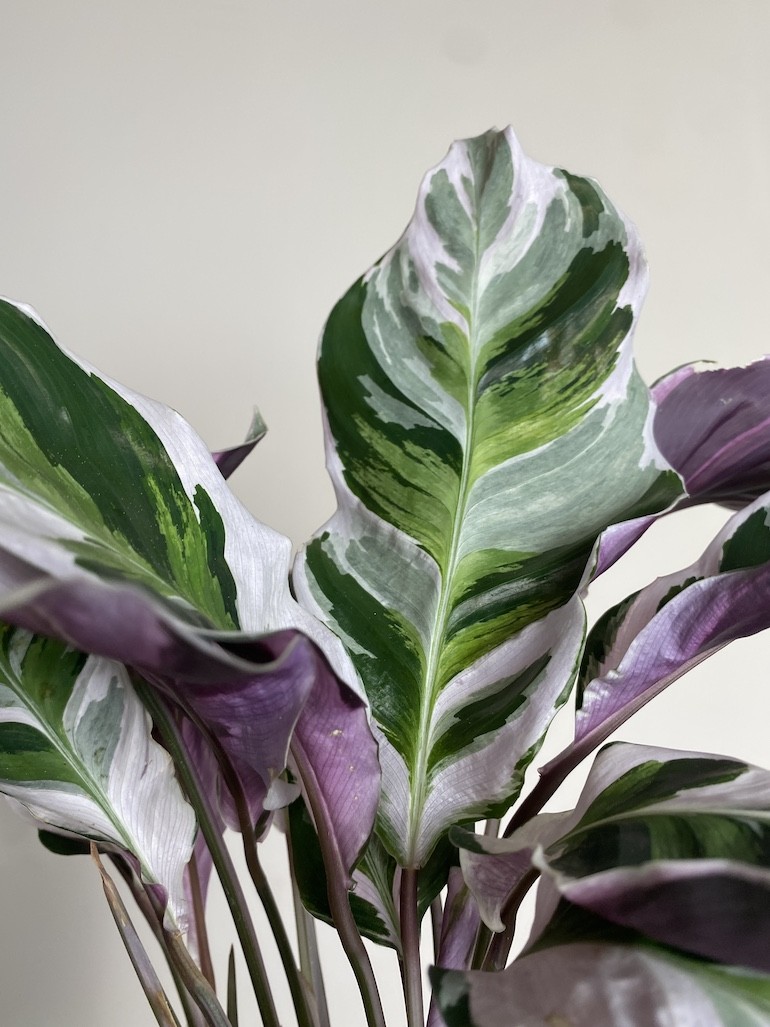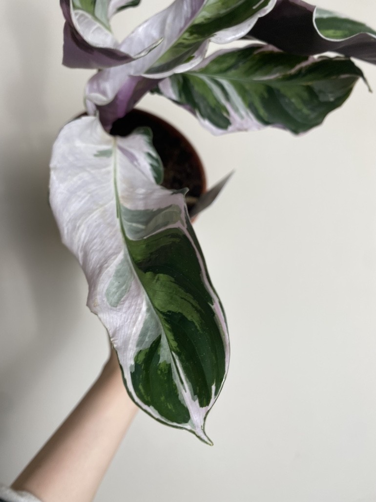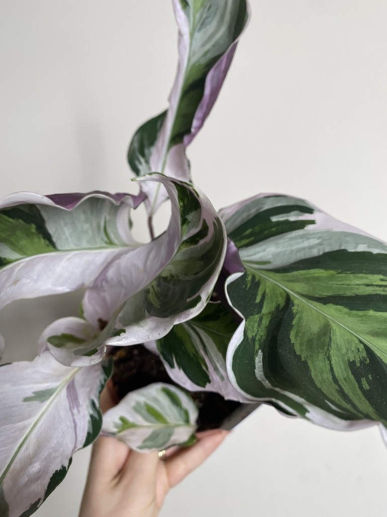 Calathea ‘Fusion White’ to rośliną rzadko spotykaną w sprzedaży, ciesząca się dużym uznaniem wśród miłośników kolekcjonerskich okazów. Jej niesamowite ulistnienie jest koloru jasnej zieleni z widocznymi białymi przebarwieniami.